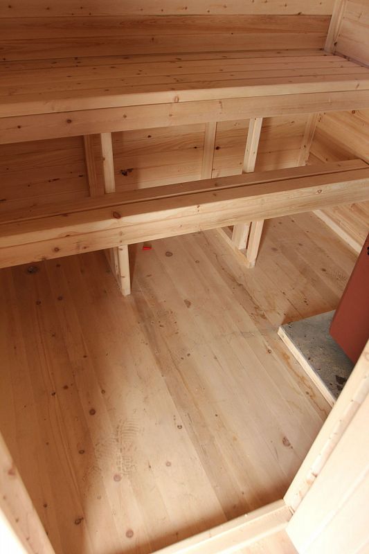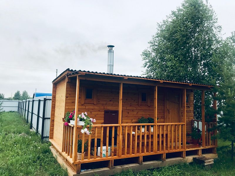 Заказывали как летний домик с дополнительными окнами и расширенной верандой, получилось очень интересно. А вместо полков у нас были лежаки. Сами купили матрасы в размер. На первое время вообще было очень удобно, потом достроили дом, переехали туда, а этот переоборудовали в баню. Докупили печь в Дарах Кедра. Все просто т удобно.