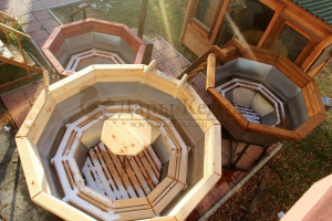 Желание продлить лето всегда оправданно, ведь оно такое короткое по большей части территории России. Спрос рождает предложение, поэтому не так давно российские компании стали производить теплые небольшие эко-бассейны из дерева (купель фурако) или металла (банный чан).