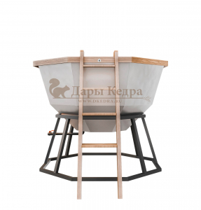 Прочная и удобная лестница из металла с обшивкой из кедра позволит комфортно подниматься и погружаться в воду (5 ступеней и площадка).