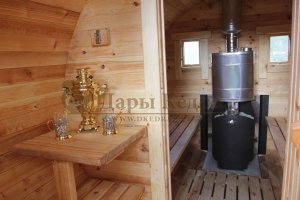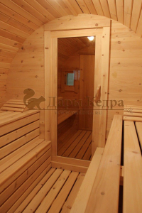 - Круглая баня-бочка 3,5 и 4,5 метра - раздевалка, парилка;