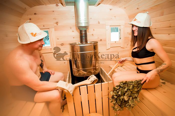 "Баню заказывали с внутренней топкой, обожгли печь заранее на улице, ушло часа два на обжиг, зато потом когда затопили, то не было в парной ни гари, ни дыма. Если не обжигать печь на улице, а делать это внутри бани, то потом придется долго проветривать парилку, поэтому лучше не торопиться, а все-таки все эти операции провести на улице. Далее порадовал расход дров: пара охапок и за 30 минут баня уже готова к парению. В нашу бочку длиной 5 метров спокойно входят одновременно 5 взрослых, двое парятся, двое моются, один пьет чай в раздевалке, там у нас стоит откидной столик. Всё для того, чтобы было комфортно всем: и отдыхающим от парения, и только начинающим свои банные процедуры. Компания нам дала 3 года гарантии на конструкцию, она у нас была заказана с покрытиями внутри и снаружи. По минусам - пока их не вижу, возможно, в дальнейшем что-то обнаружится, а пока мне всё нравится!"