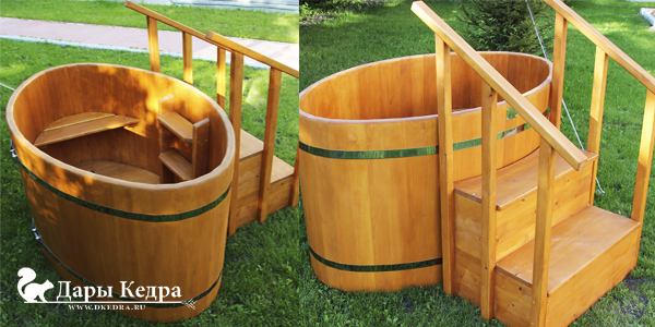 Кедр — природный антисептик с приятным хвойным ароматом. Уничтожает вредные бактерии в воде и воздухе, насыщает воздух эфирными маслами. Поэтому чаще всего заказывают кедровые чаши. Водная процедура в них восстанавливает силы и нормализует давление. А дубовая купель улучшает состояние кожи, нормализует работу нервной системы. Преимуществом изделий для бани является их экологическая чистота и оригинальный внешний вид. Недостаток один — они могут рассохнуться и начать пропускать воду, но зачастую это происходит из-за неправильной эксплуатации и несоблюдении простых правил, рекомендуемых компанией-производителем. Благодаря металлическим обручам, скрепленных болтами, можно отрегулировать изделие и расслабить обручи при разбухании дерева, а при усыхании — стянуть.
